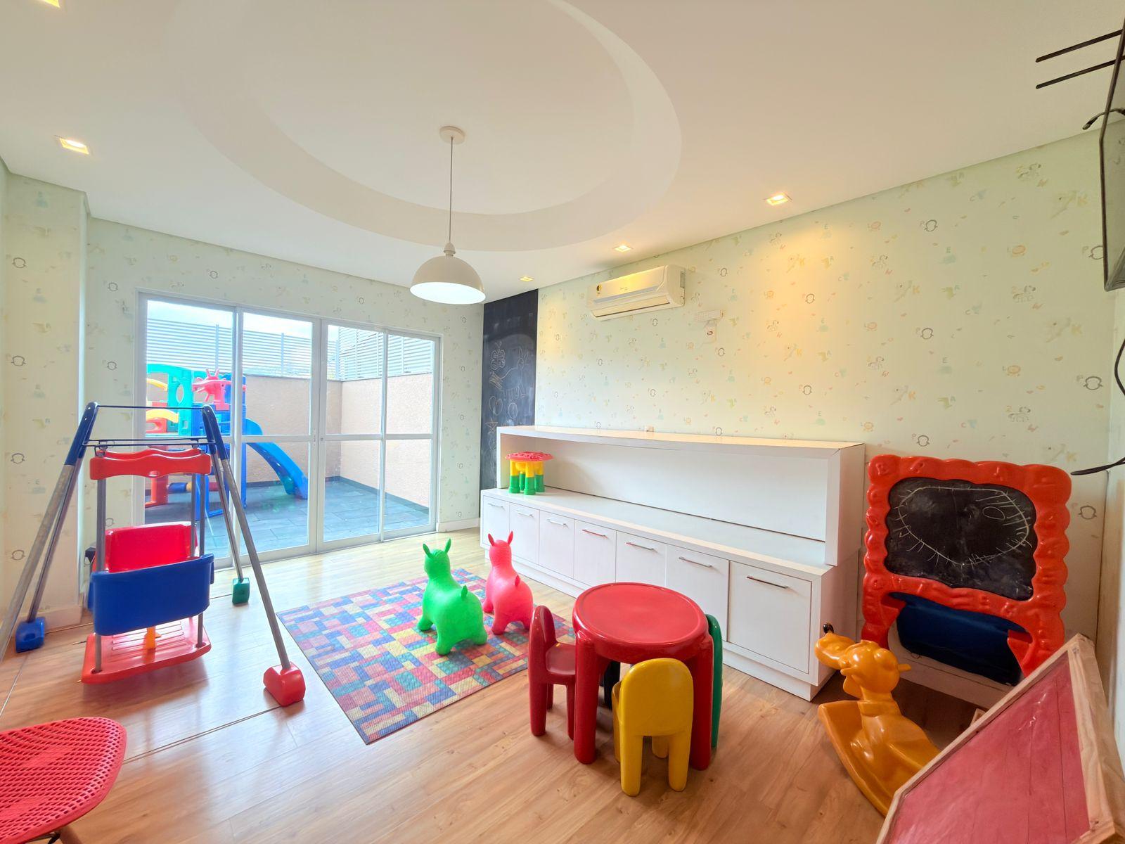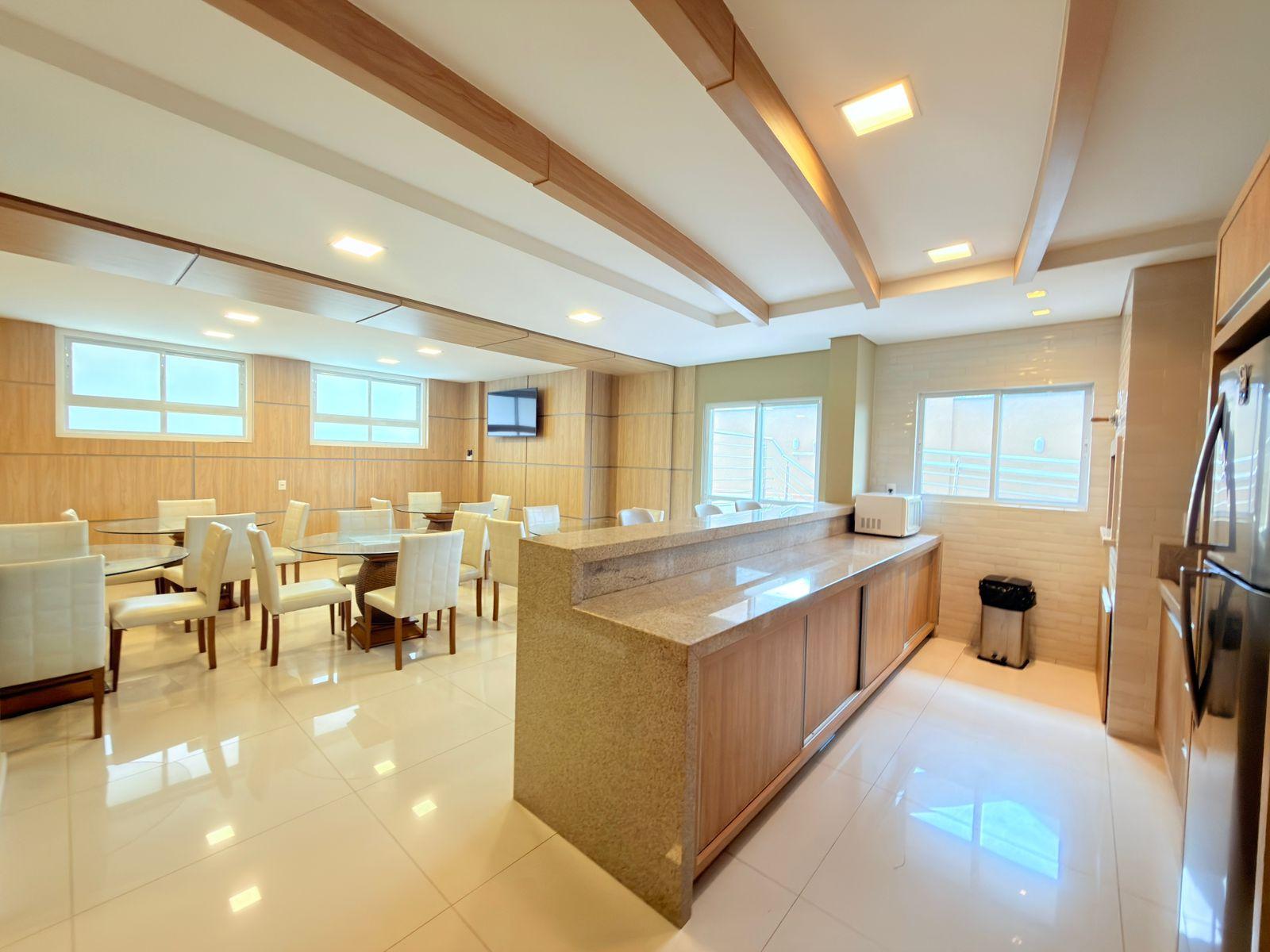 A área interna apresenta um layout bem distribuído, com integração entre os ambientes sociais, oferecendo conforto e sofisticação no dia a dia. A cobertura conta com três dormitórios, sendo uma suíte principal e duas demi-suítes, garantindo praticidade e funcionalidade para toda a família.