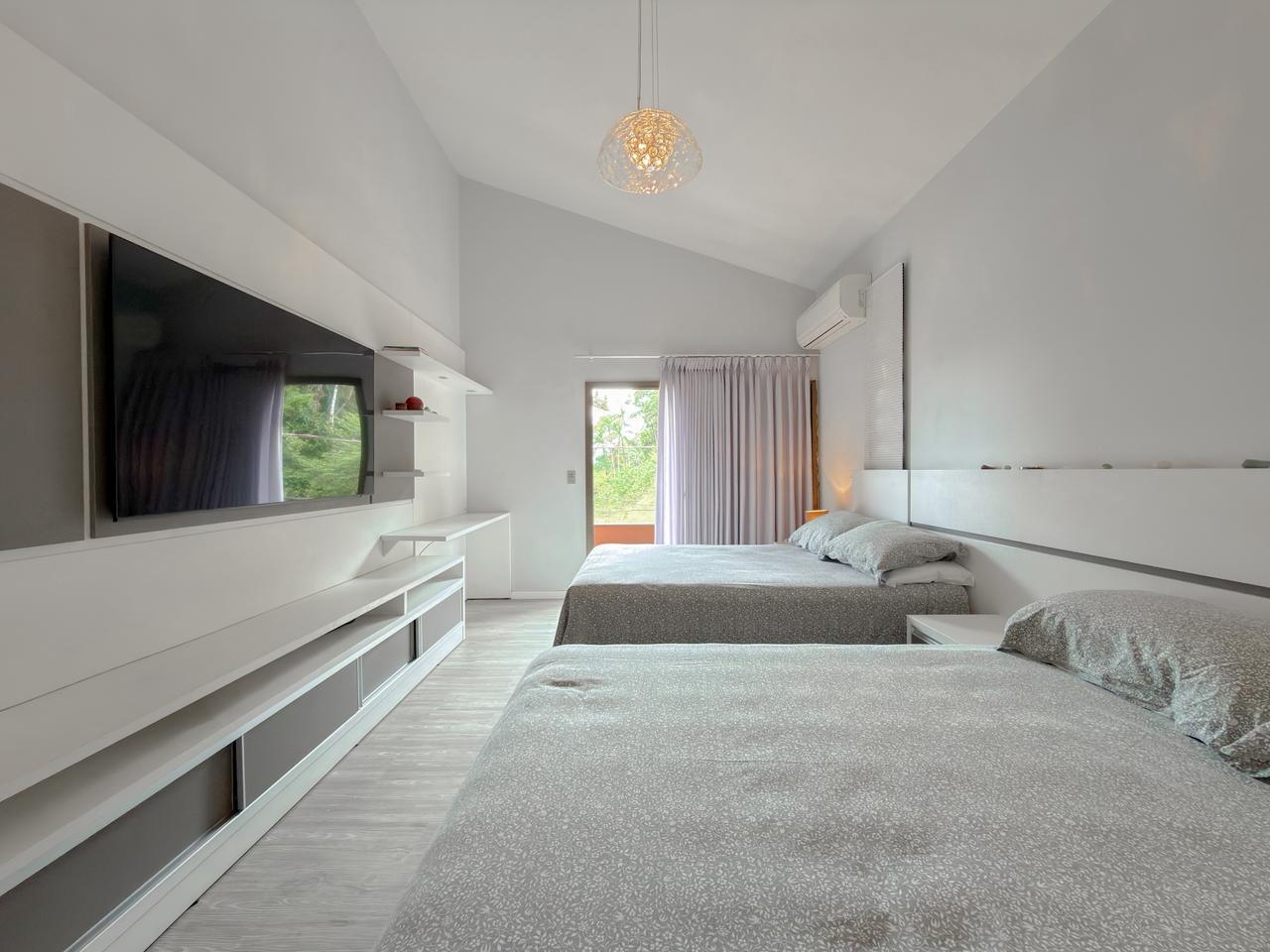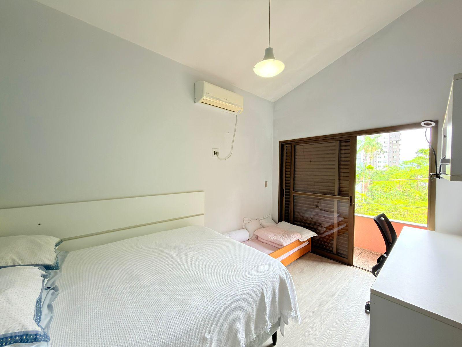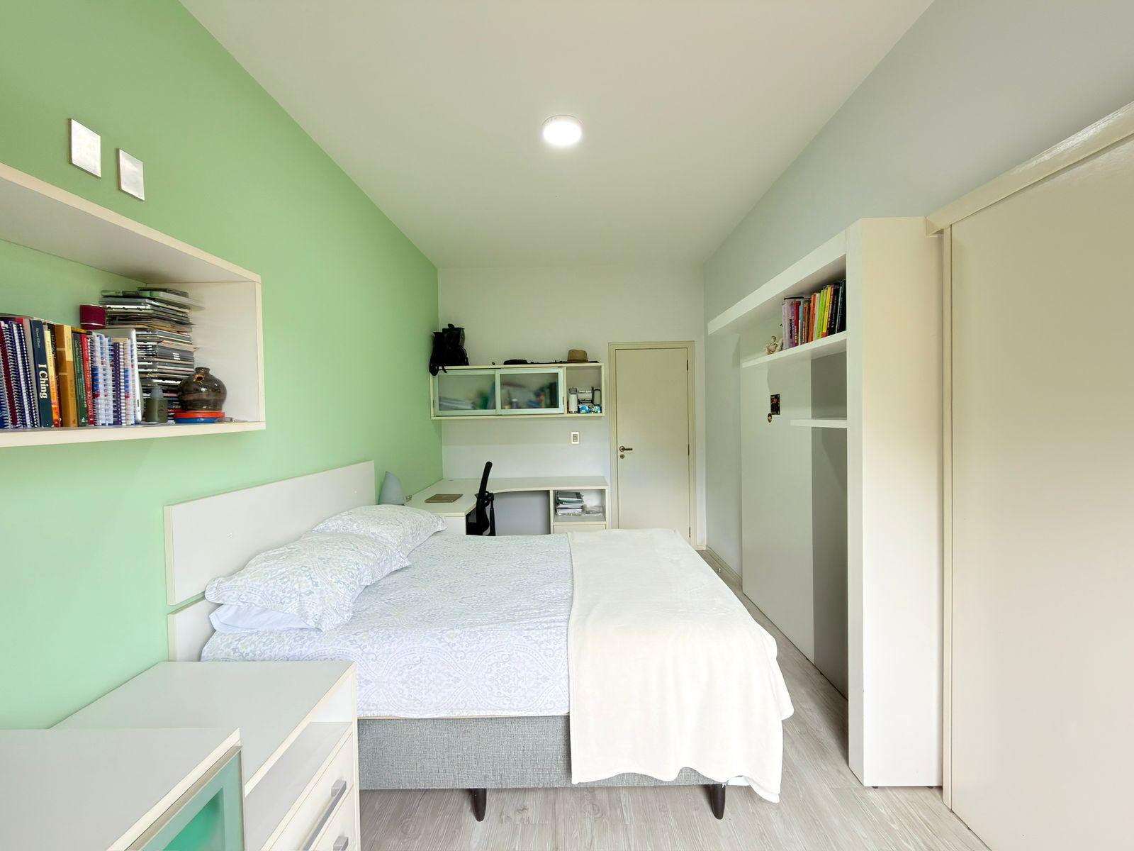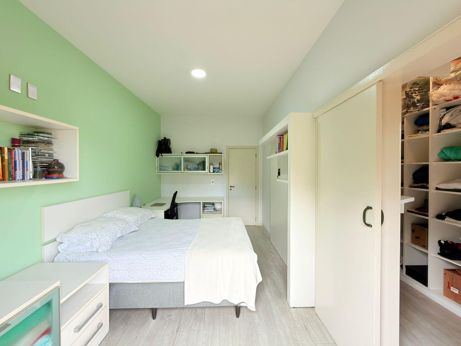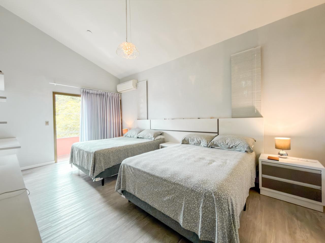 São quatro dormitórios, sendo uma suíte espaçosa com closet e banheira, ideal para momentos de relaxamento. Os demais quartos são amplos, bem iluminados e todos contam com sacada privativa e vista panorâmica, reforçando a conexão com a paisagem natural ao redor.
