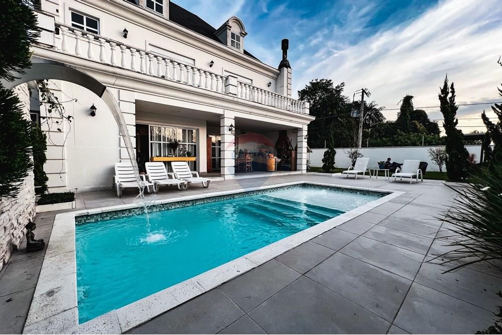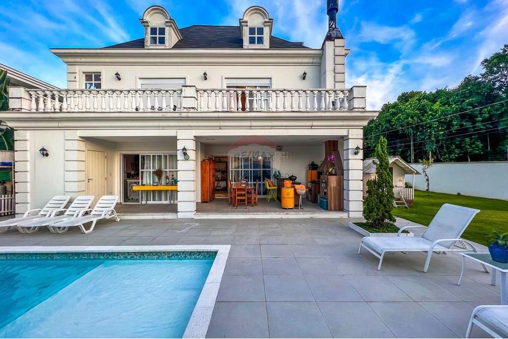 Com uma generosa área de 750m², a casa conta com 4 suítes espaçosas com closet, totalizando 6 banheiros, oferecendo praticidade e privacidade para toda a família. Os ambientes são amplos e bem distribuídos, perfeitos tanto para o dia a dia quanto para receber convidados com requinte.